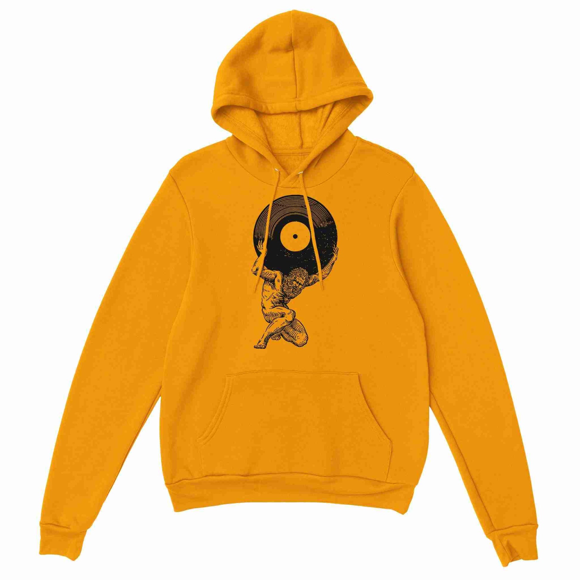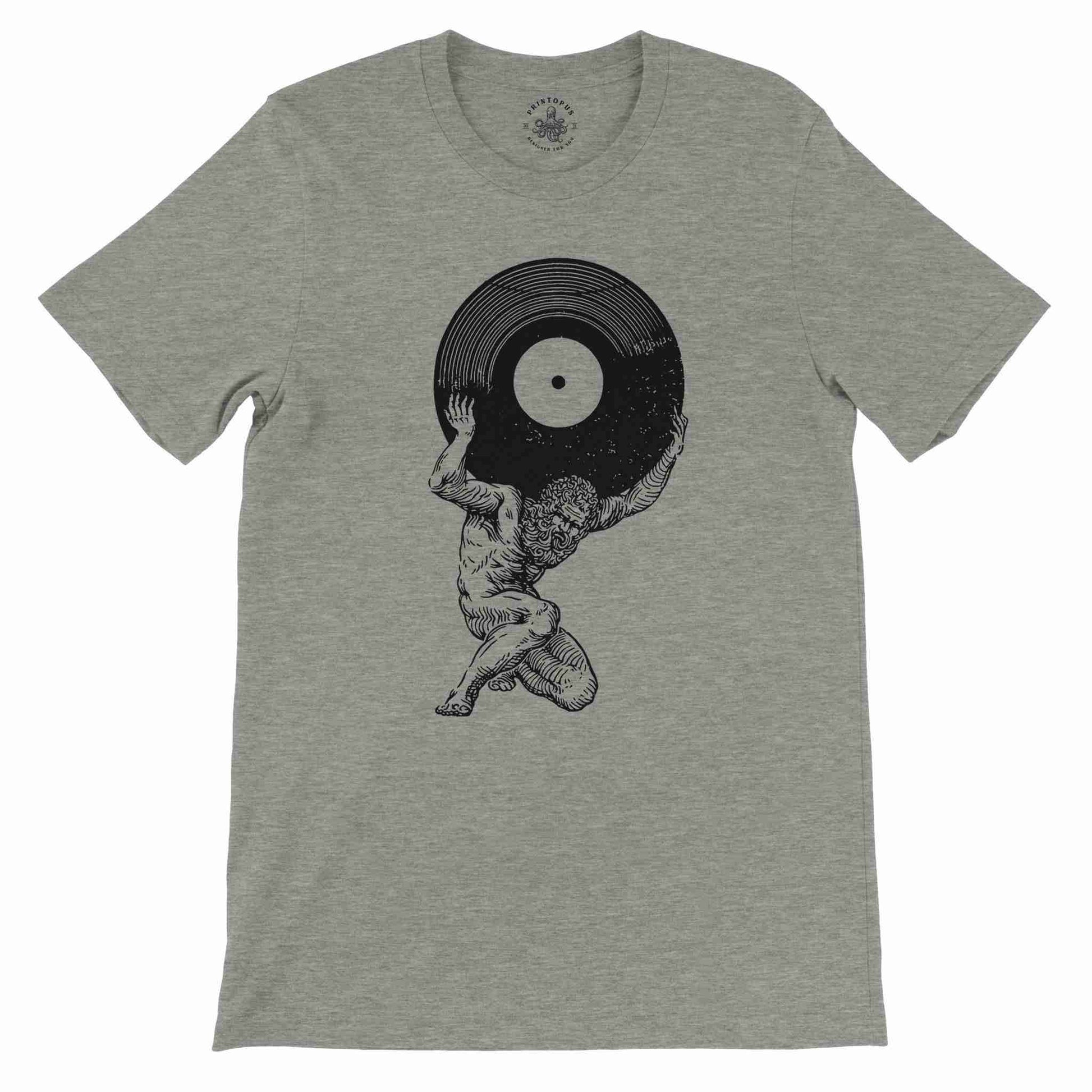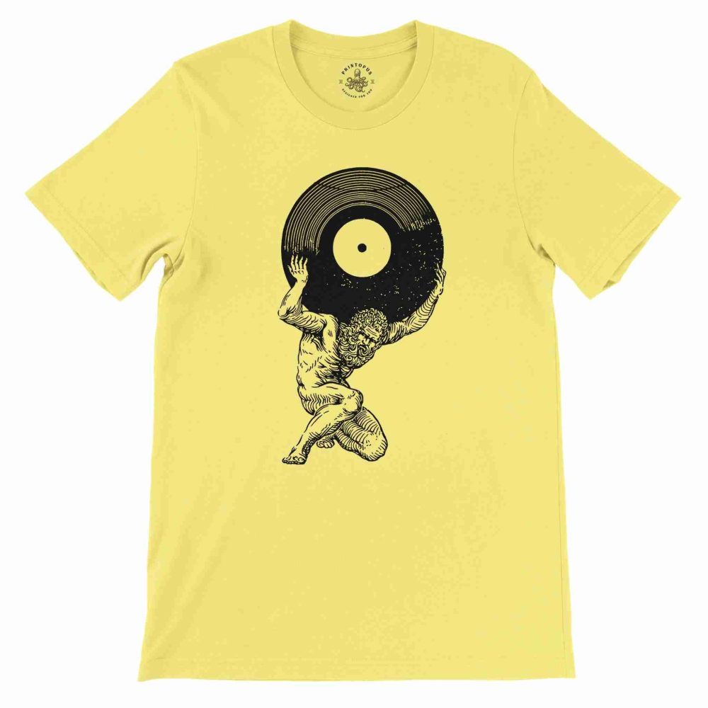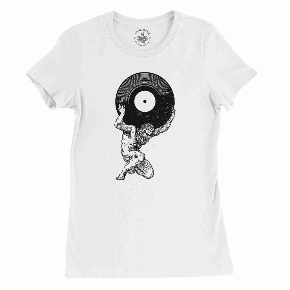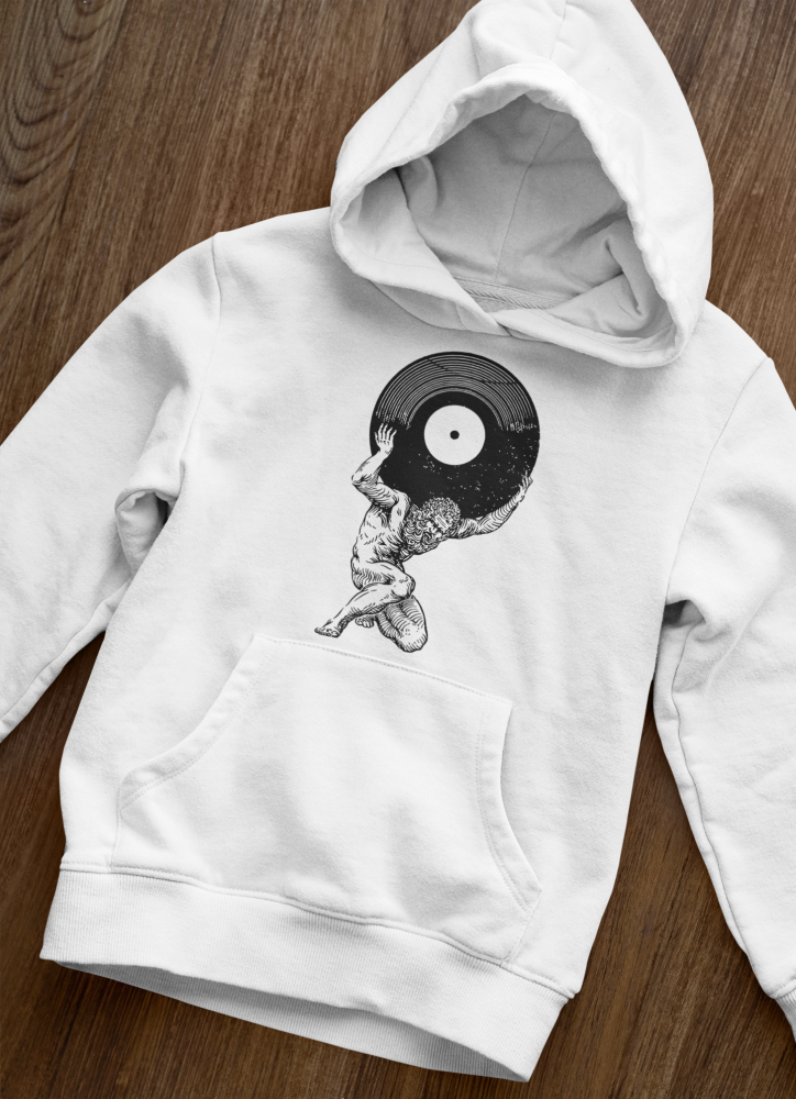 Viaja en el tiempo con nuestra "Armonías Clásicas". 🏛️🎶 Esta ilustración presenta a un antiguo griego cargando un Long Play, uniendo la grandeza de la antigüedad con las melodías modernas. Una prenda que celebra la eterna conexión entre la cultura clásica y la música atemporal. 🏺👕