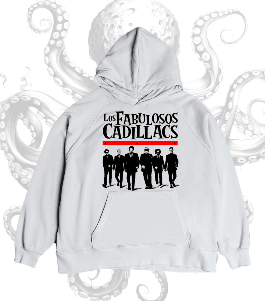 Los Fabulosos Cadillacs llegan a nuestra tienda con un diseño espectacular que celebra su estilo inigualable. 🎶 Si eres fan del ska y el rock latino, este hoodie es para ti. Dale un toque único a tu estilo mientras caminas con los icónicos miembros de la banda. 🌟