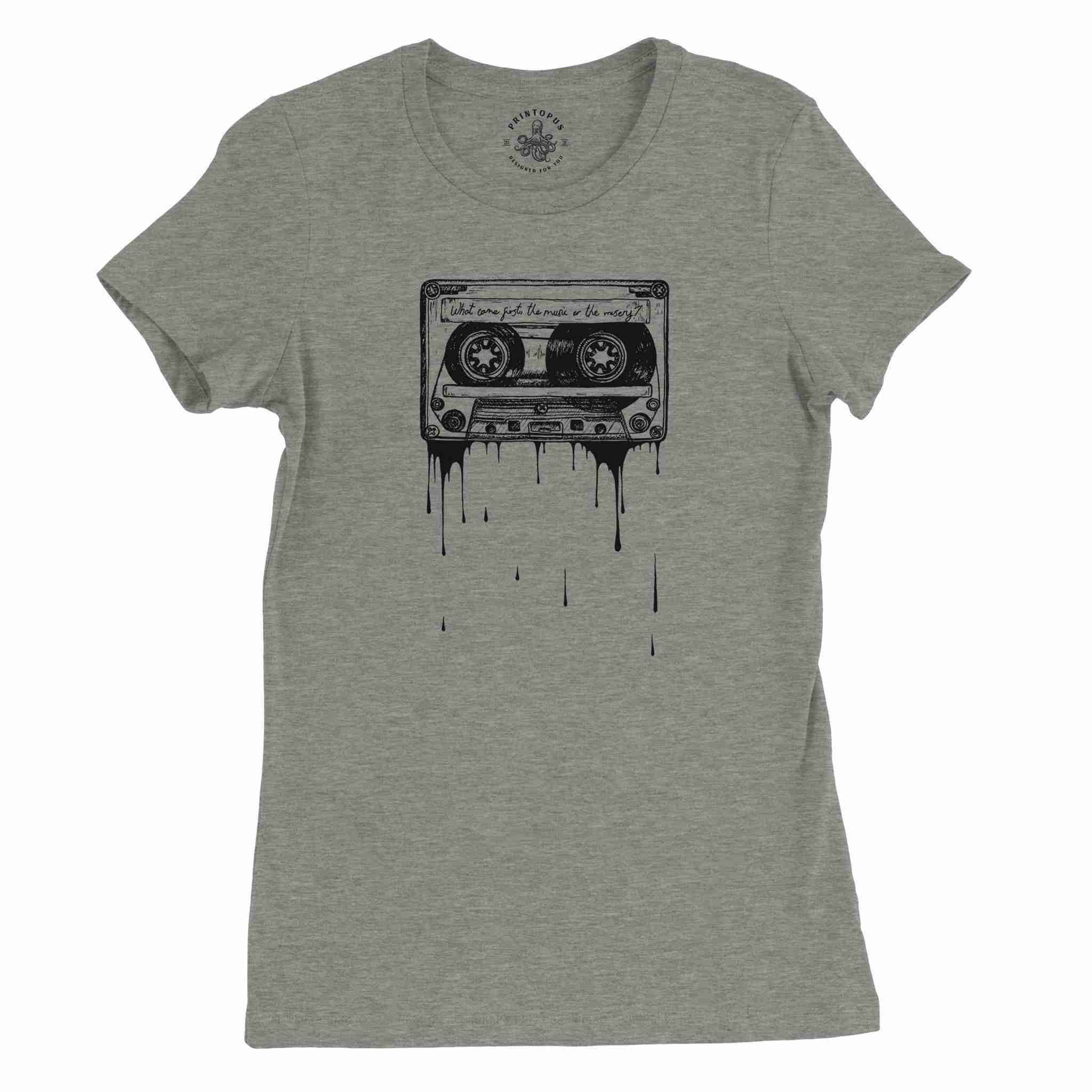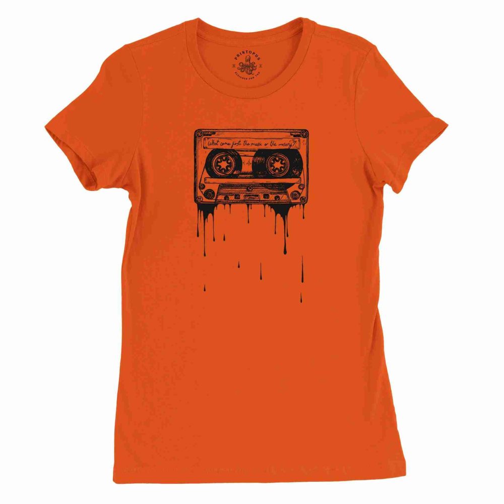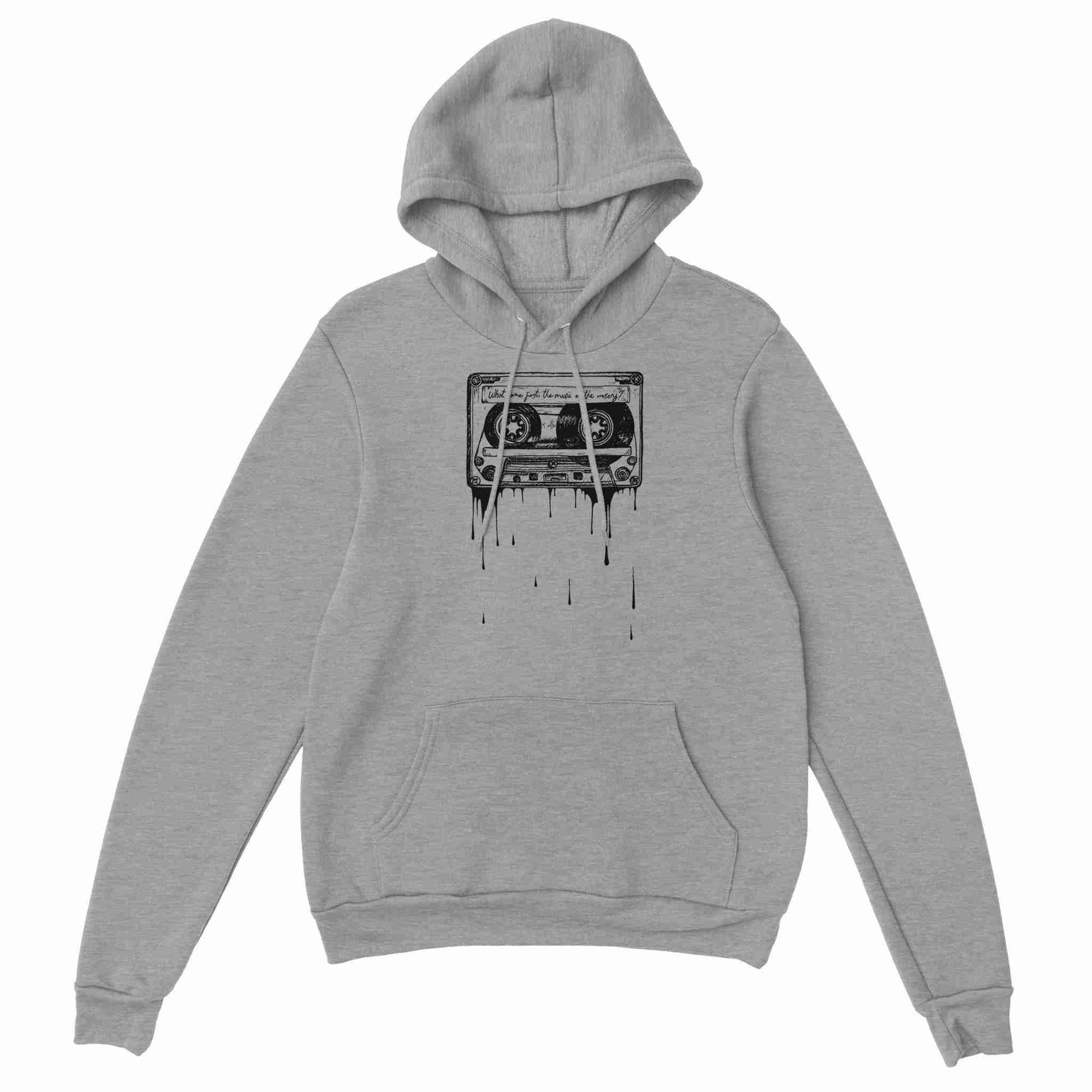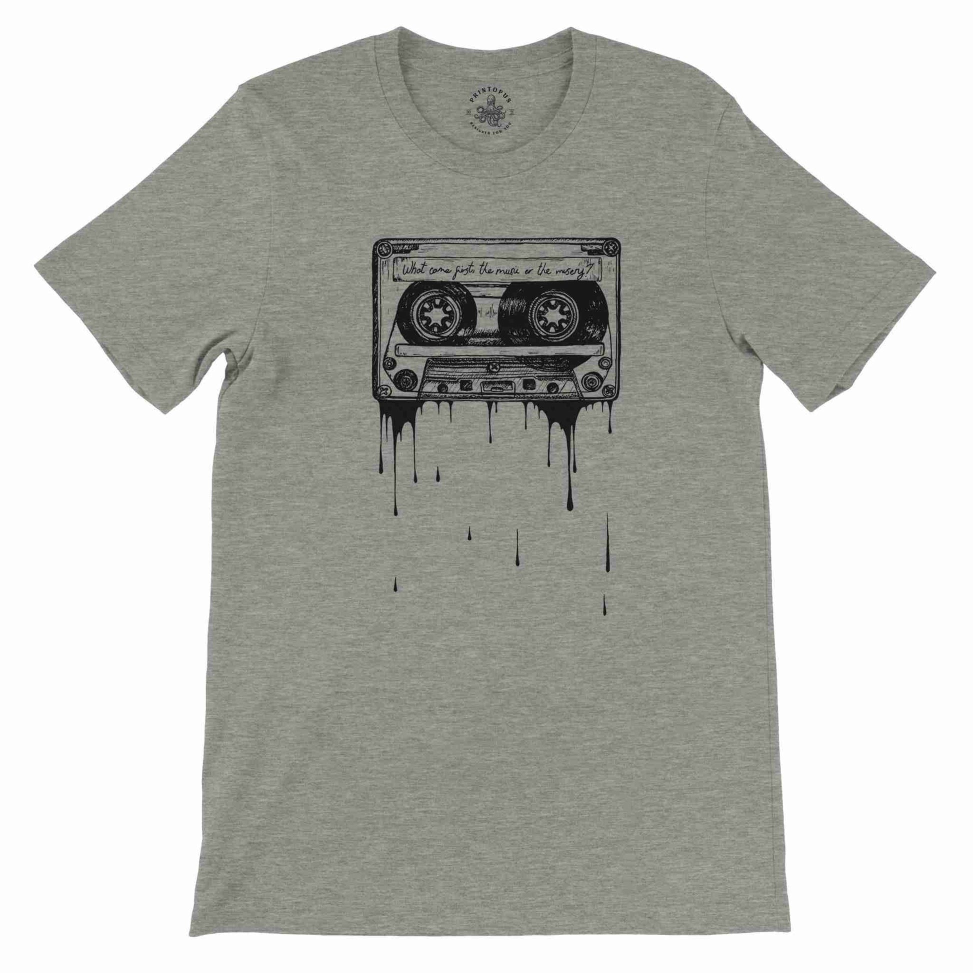 Explora la dualidad del tiempo con nuestro "Cassette Derretido". 🕰️🔥 Esta ilustración presenta un cassette derritiéndose con la pregunta provocadora: "¿Qué llega primero, la música o la miseria?". Un diseño que invita a reflexionar sobre la fugacidad del arte y la realidad. 🎶👕