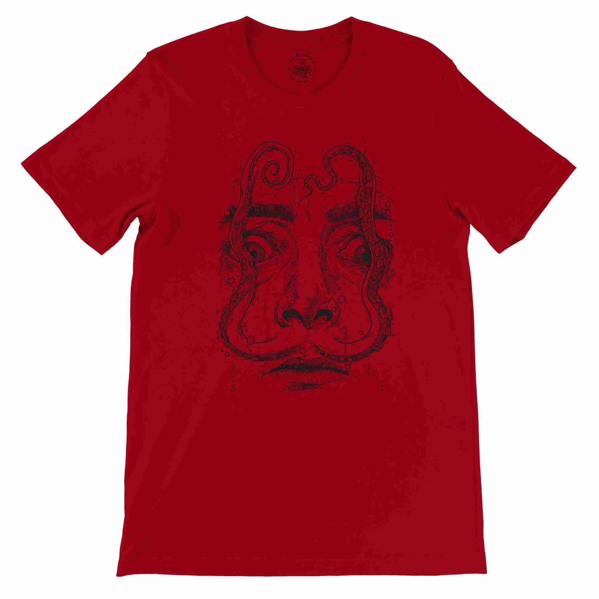 Explora la surrealidad del arte con nuestro "Dali Pulpo". 🎨🐙 Esta ilustración presenta el rostro de Salvador Dalí, donde su icónico bigote se transforma en tentáculos de pulpo, fusionando la genialidad surrealista con la maravilla del océano. Una prenda para amantes del arte y del mundo submarino. 🌊👕