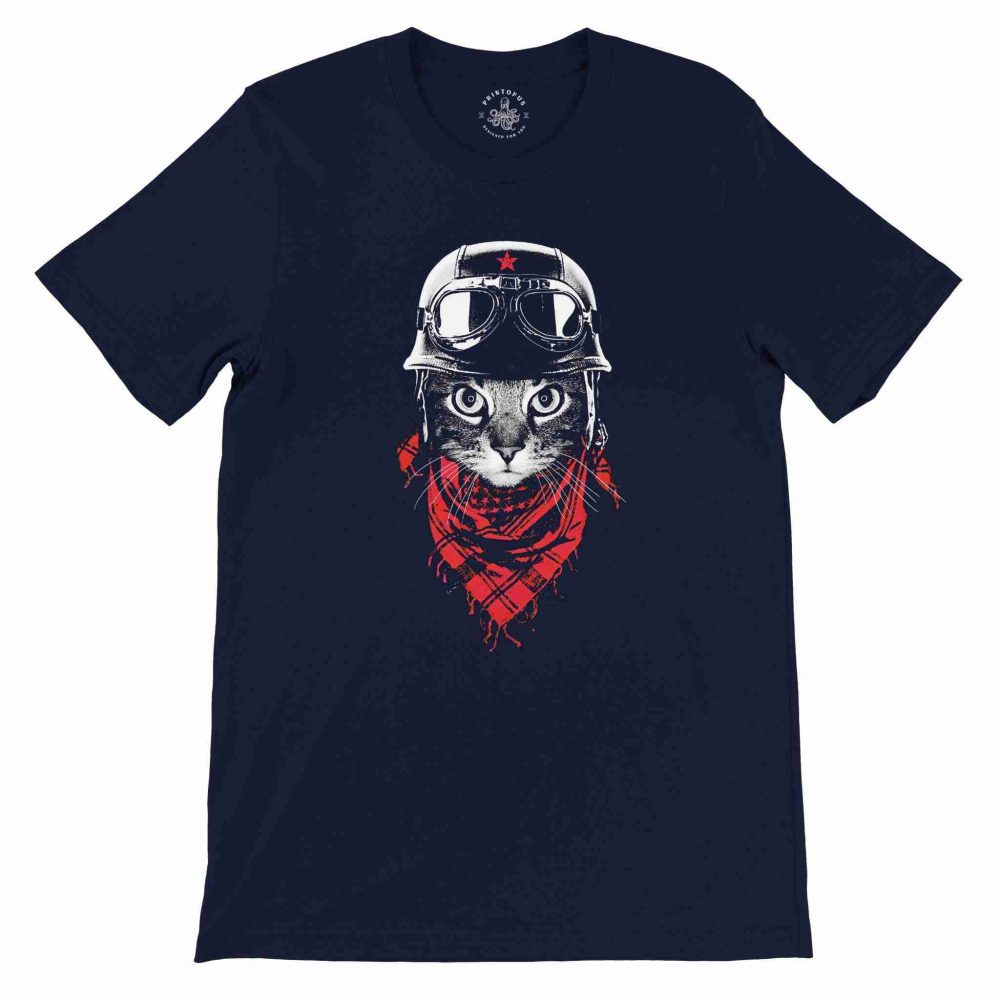 Embárcate en una travesía con nuestro "Gato Explorador". 🐾✨ Esta ilustración presenta la profunda mirada de un gato, con una pañoleta, gafas y casco, listo para la aventura. La expresión en sus ojos revela un mundo de curiosidad y determinación. 🐱👕 Viste con estilo y lleva contigo la esencia exploradora de los felinos.