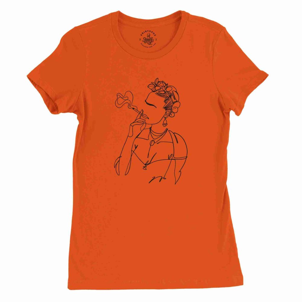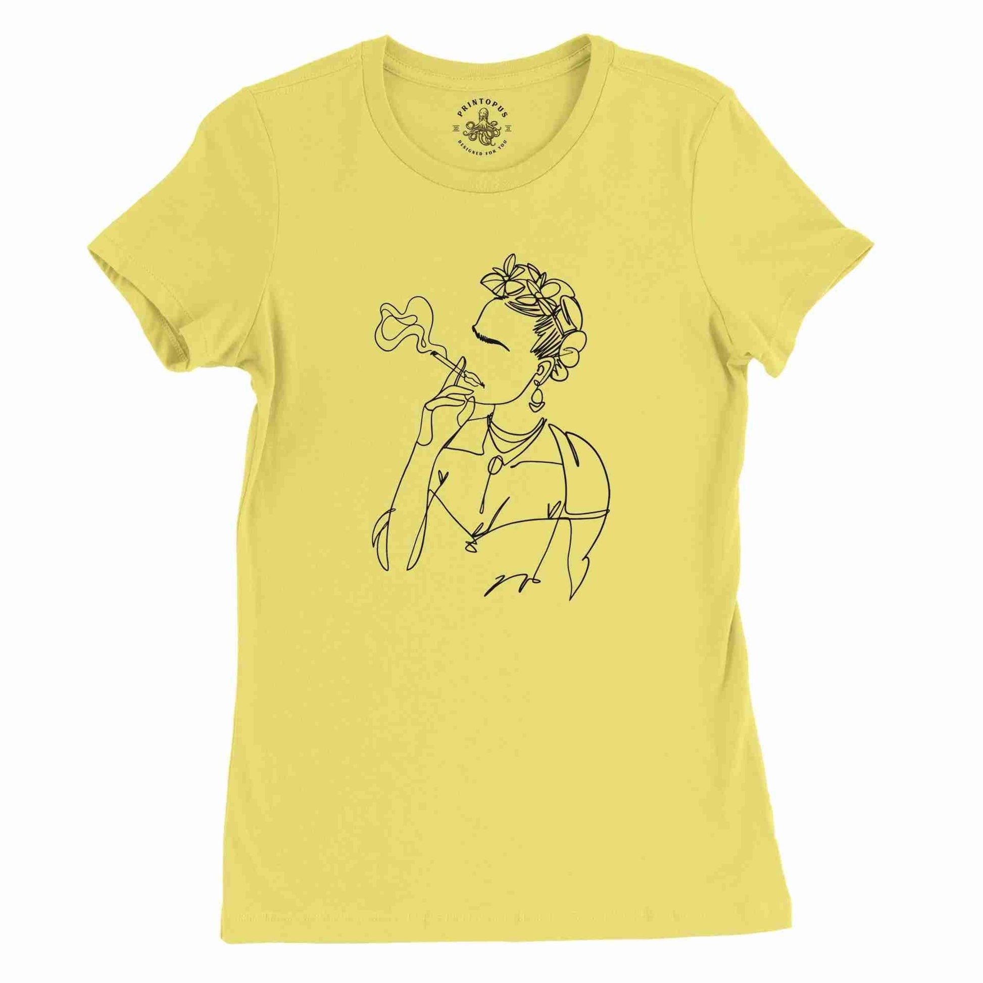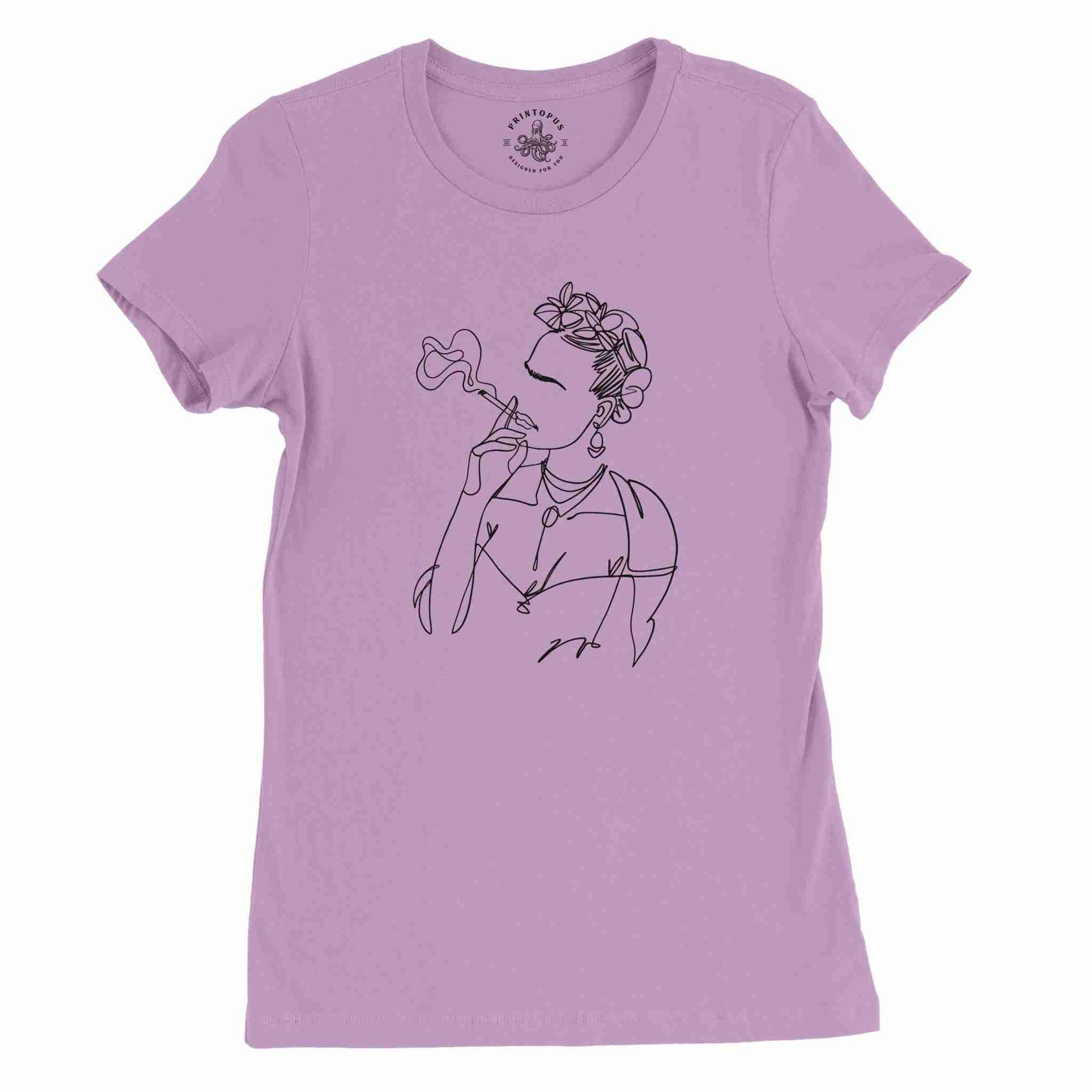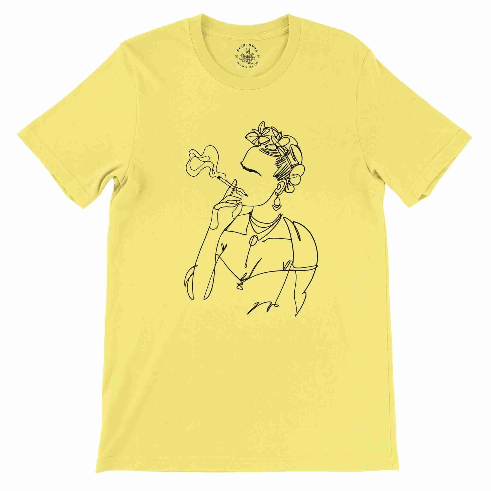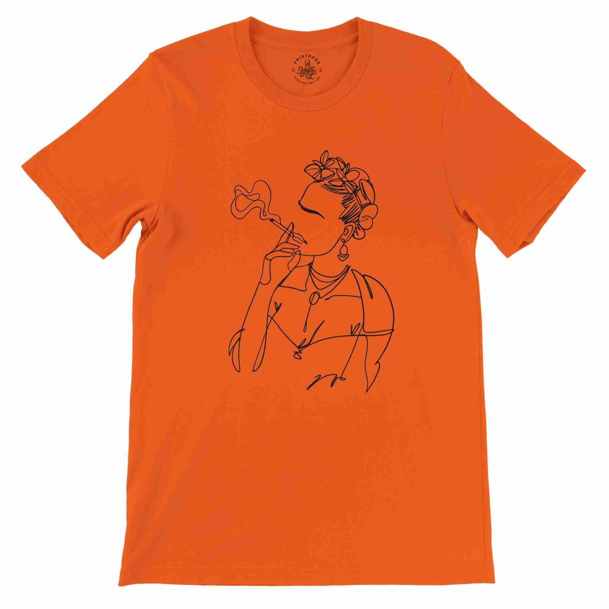 Celebra la pasión y el arte con nuestras "Líneas de Pasión". 🎨🚬 Este dibujo a líneas presenta a Frida Kahlo con un cigarrillo, capturando su esencia rebelde y artística en una representación minimalista. Una prenda que rinde homenaje a la fuerza y la creatividad de esta icónica artista. 💪👕