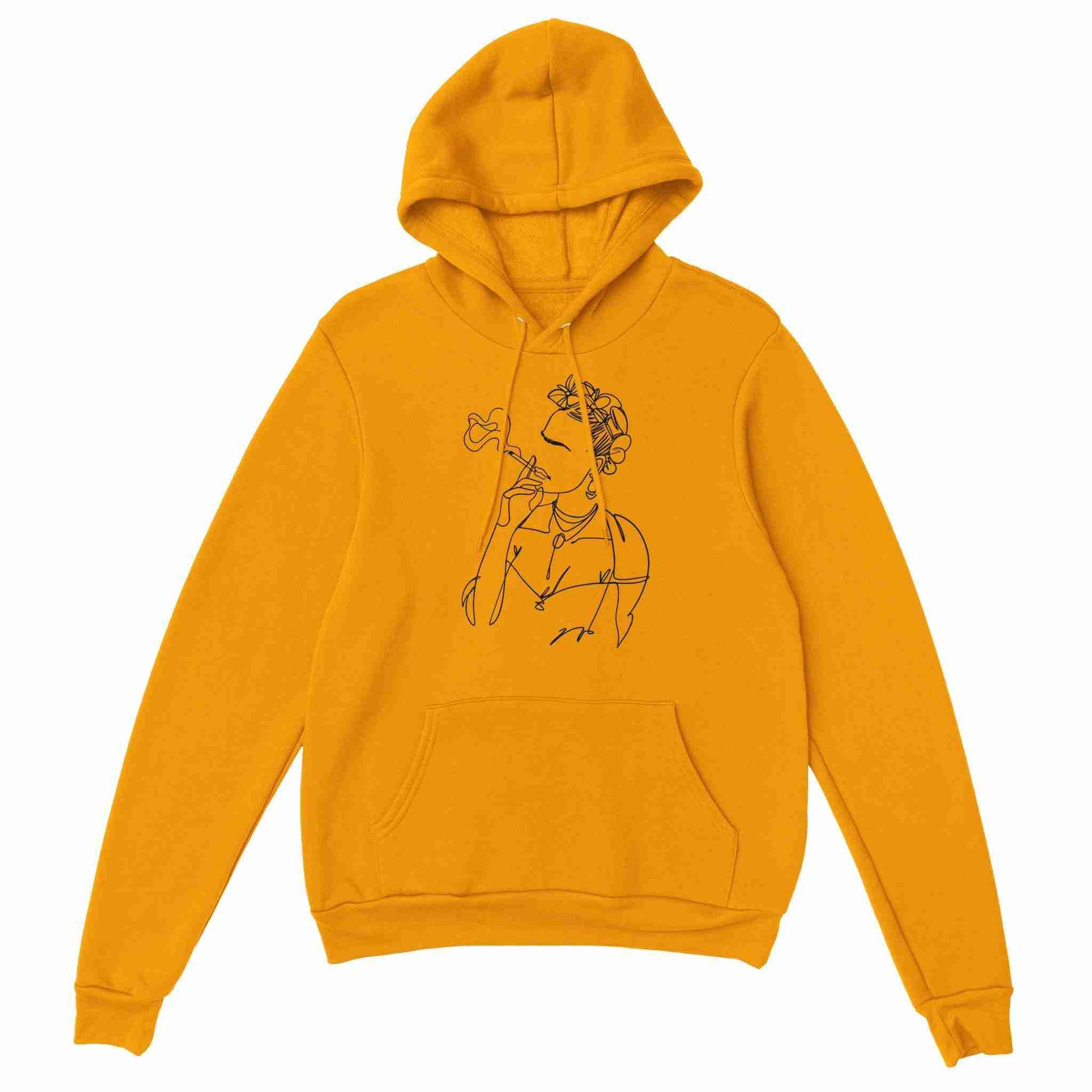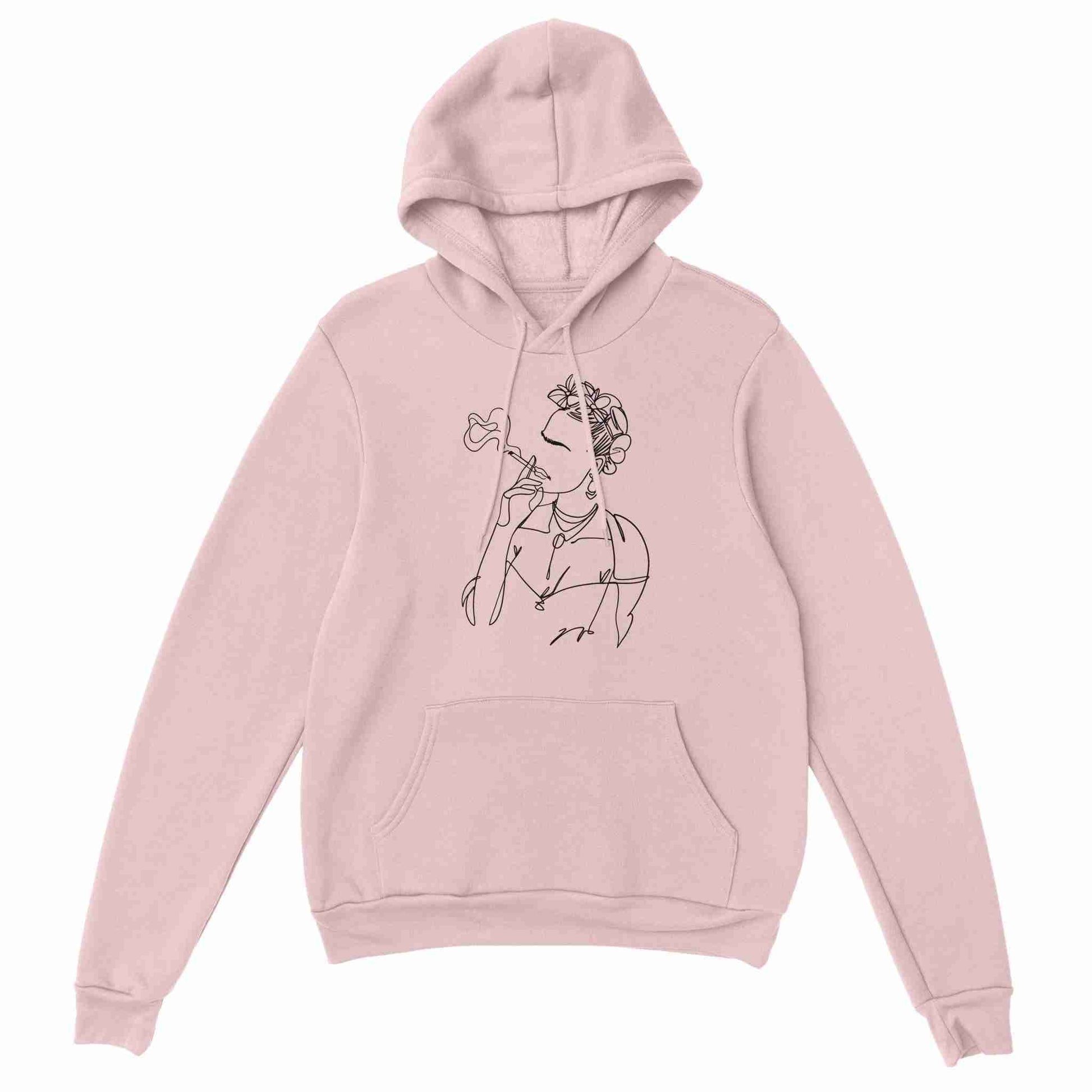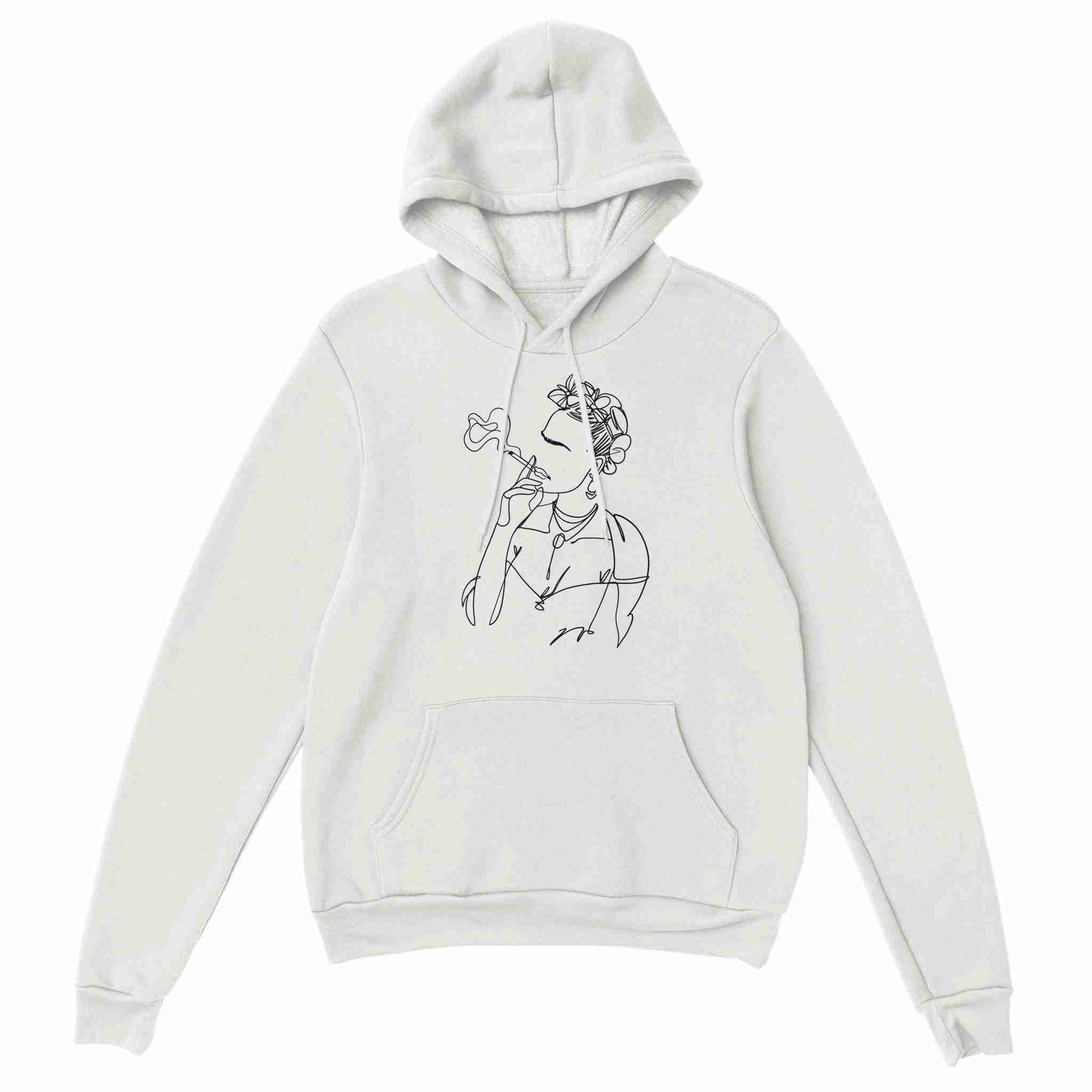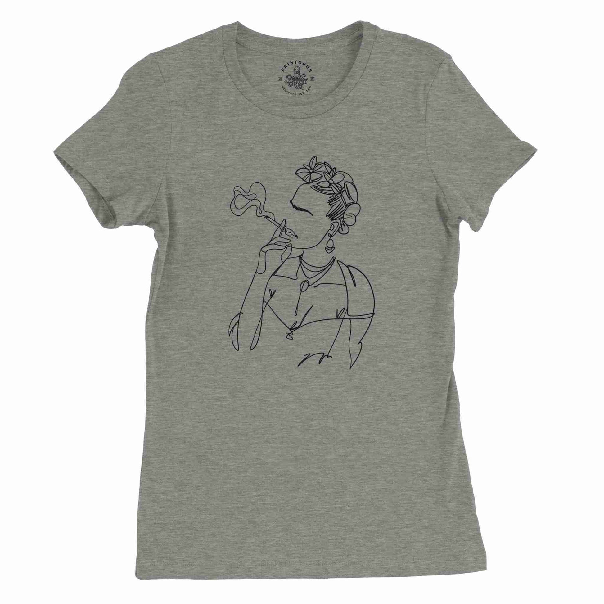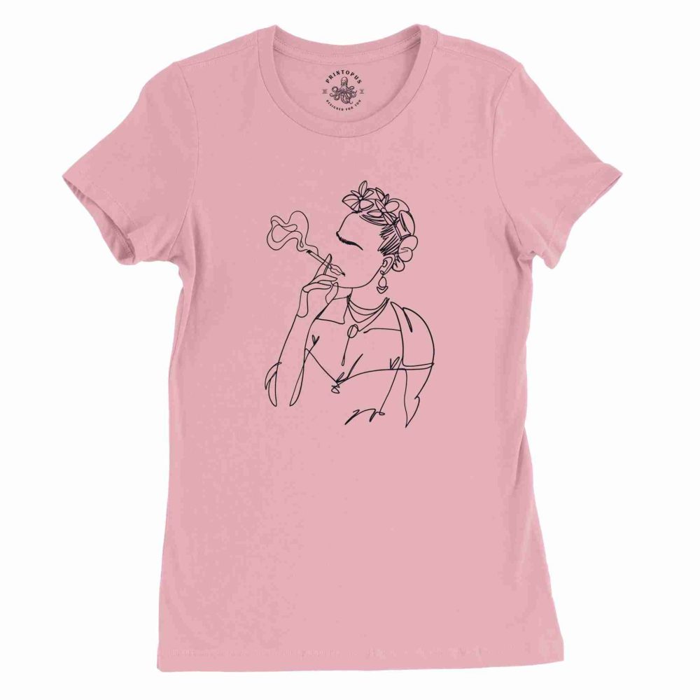 Celebra la pasión y el arte con nuestras "Líneas de Pasión". 🎨🚬 Este dibujo a líneas presenta a Frida Kahlo con un cigarrillo, capturando su esencia rebelde y artística en una representación minimalista. Una prenda que rinde homenaje a la fuerza y la creatividad de esta icónica artista. 💪👕
