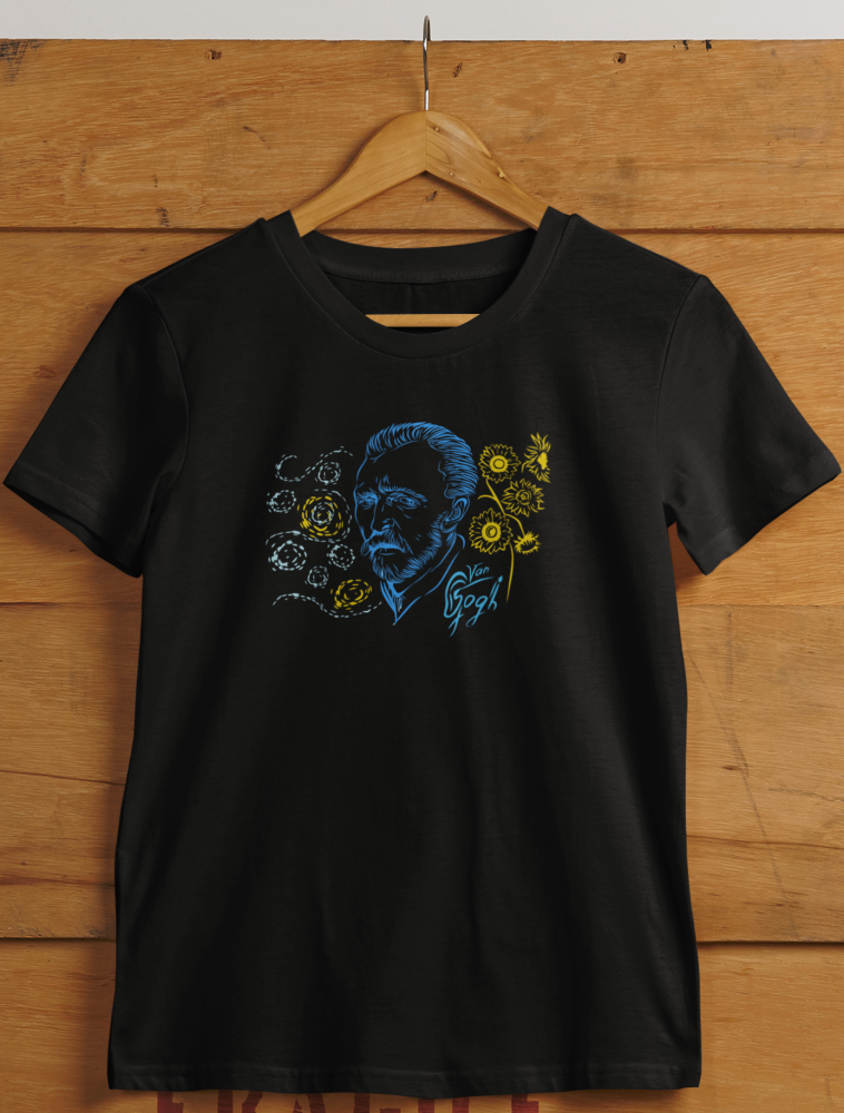 Explora la genialidad de Van Gogh con nuestro "Rostro Artístico Bicolor". 🌌🌻 Este dibujo a dos colores presenta el rostro del artista, donde se puede interpretar obras como la Noche Estrellada. Una prenda que encapsula la riqueza visual del genio artístico en cada detalle. 🎨👕